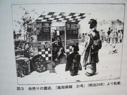 虫の商いは明治時代も盛んで大正、昭和前期まで続いたが戦局の悪化で次第にすたれ